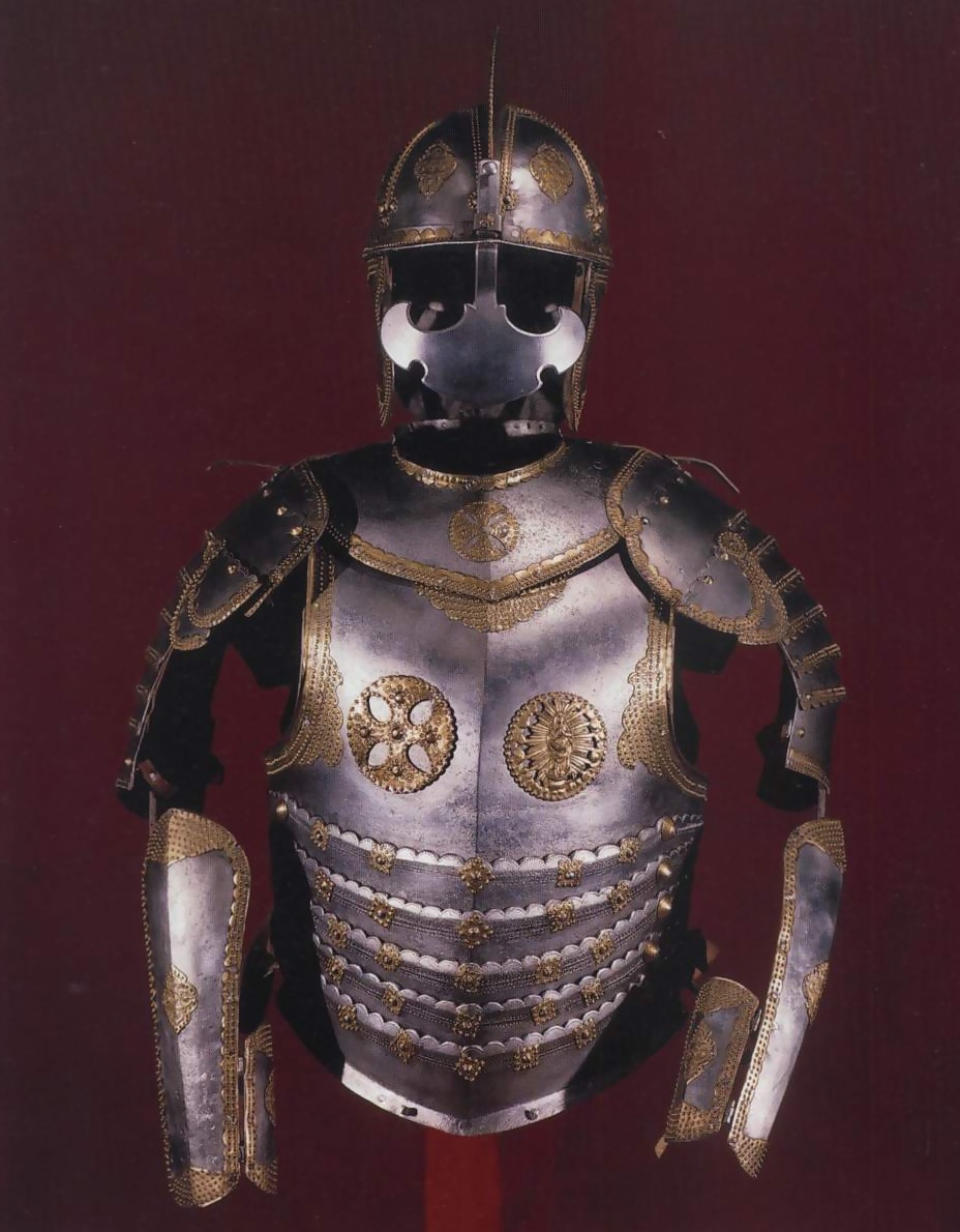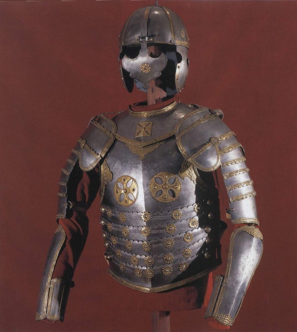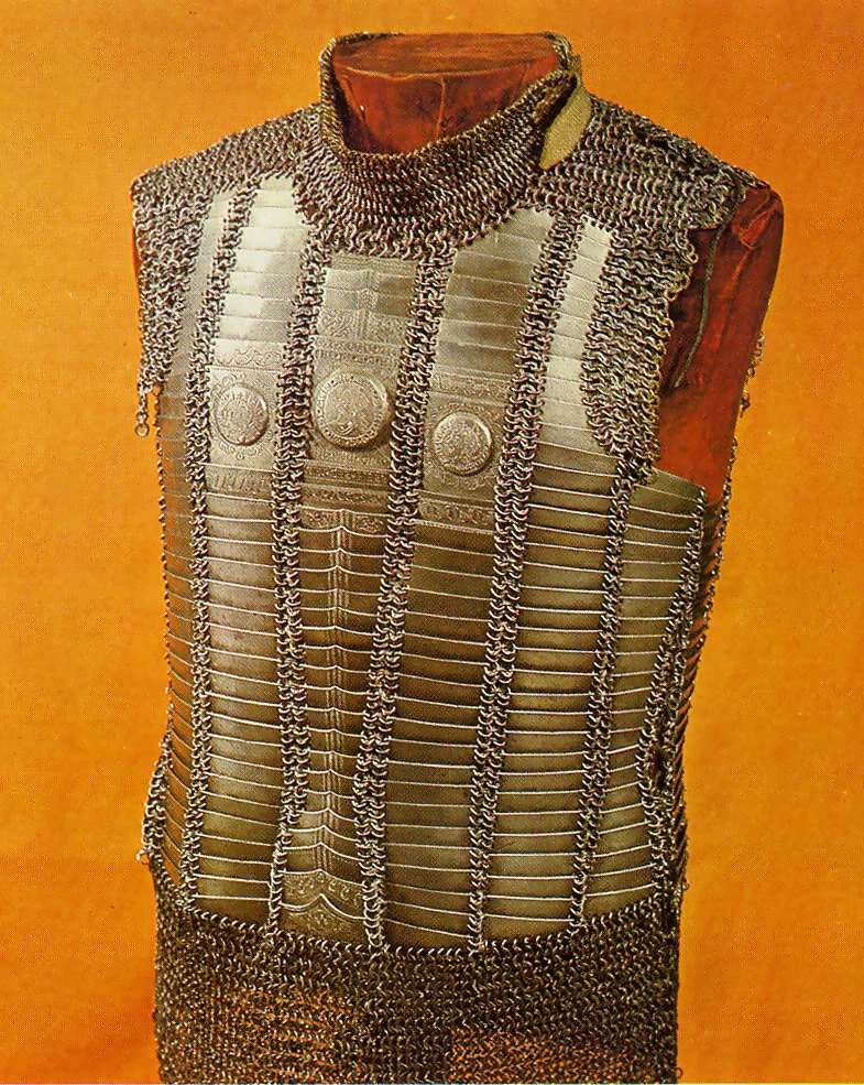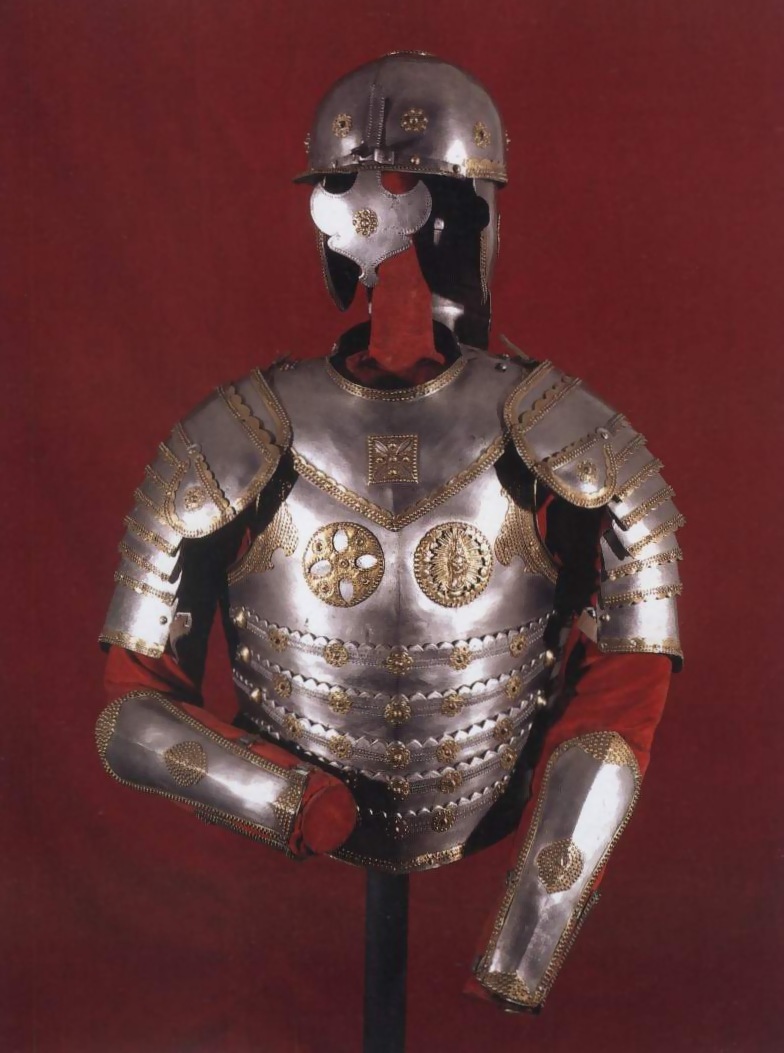 Русский трофейный бехтерец. 1576 г. Нац. музей в Кракове. Комплект польского гусара середины 16 века. Шлем турецкого типа и щит венгерского. Музей Kunstistoriches в Вене. Австрия.  Доспехи польского короля Стефана Батория, втор. пол. 16 века. Музей Kunstistoriches в Вене. Австрия.