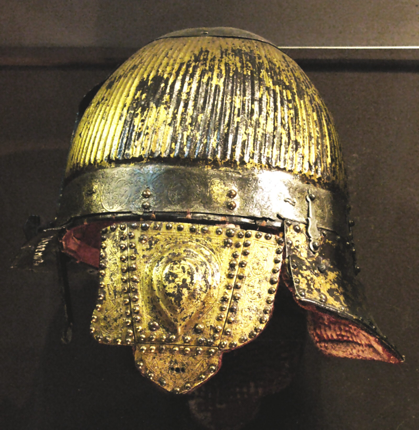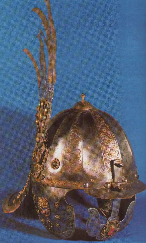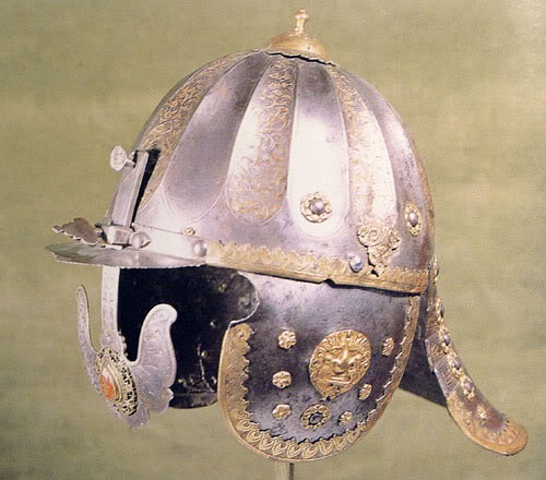 Гусарский шлем с затыльником, наушами наносником. ГИМ. Москва  Восточный шлем ерихонка с затыльником, наушами наносником. позолоченый шлем