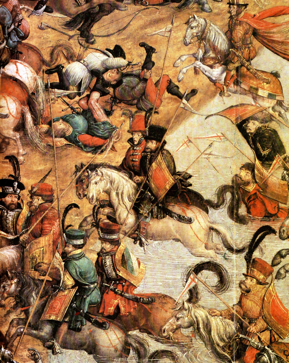 Польские гусары первой половины 16 века, фрагмент картины Битва под Оршей. Польский, еще не крылатый гусар. Гравюра неизвестного автора нач первой половины  века.