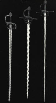 Саблей латы взять трудно, а бехтерец еще трудней. Да остается клевец и чекан, ну и копьё, и довольно редко применялся длинный колющий меч кончар (как он выглядел до сих пор не знаю). Вот только рыцарь копьём справлялся куда лучшеrapiers