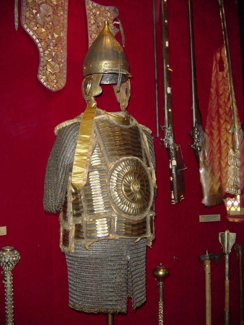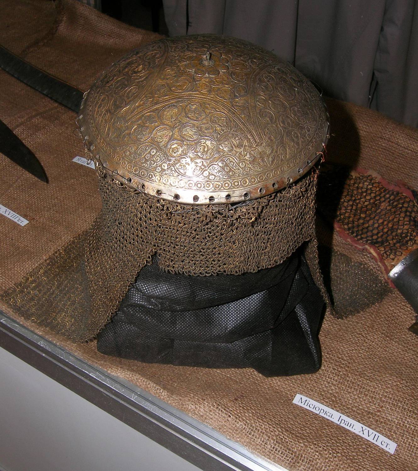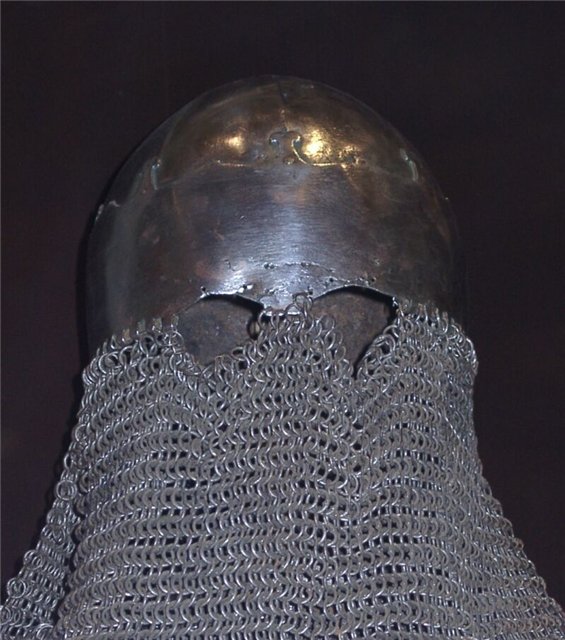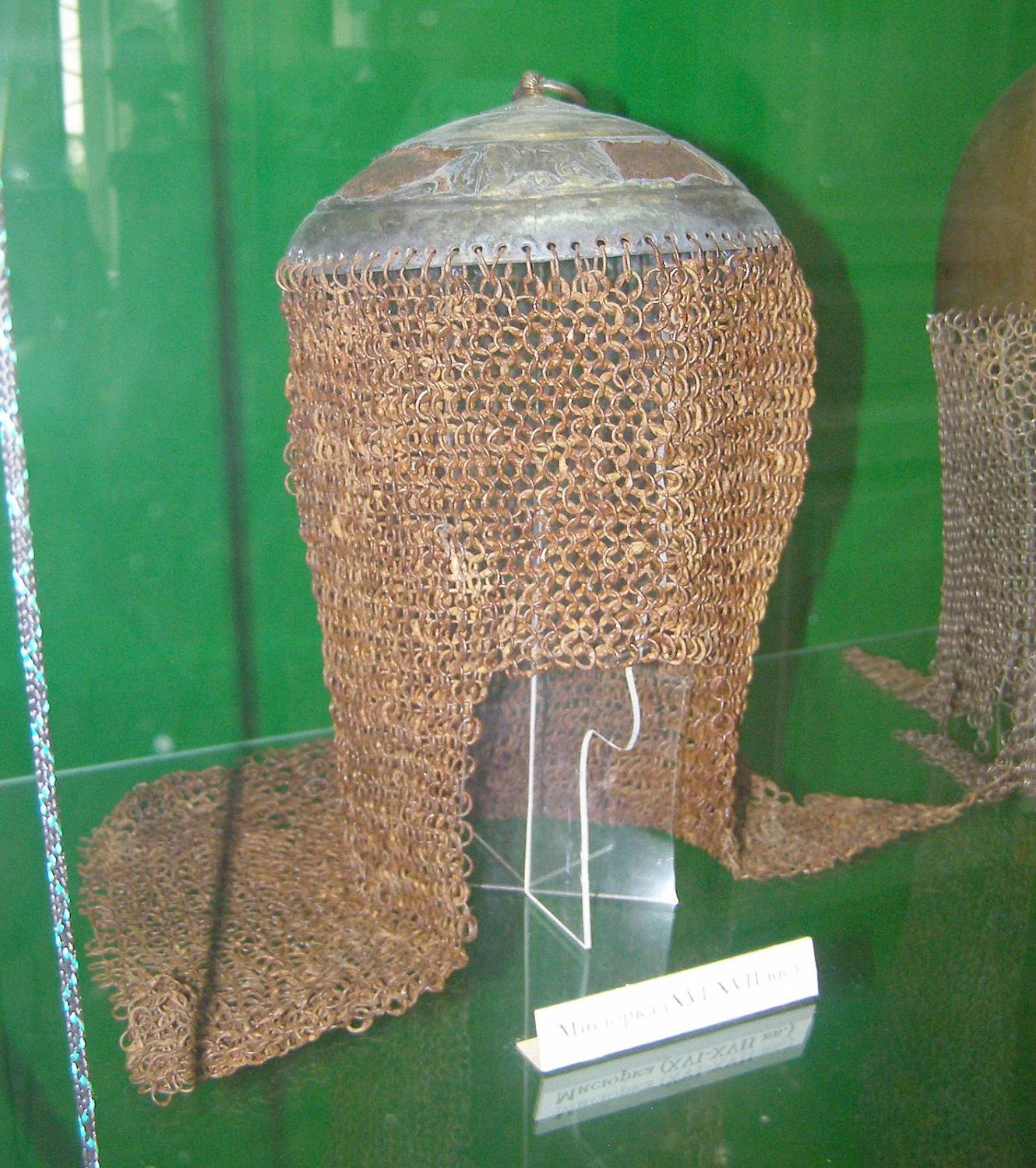 Поврежденный юшман, шапка мисюрка.  Главный исторический музей России - ГИМ, Москва. Фотографии седла, наручей, перначей и кистеня ниже.