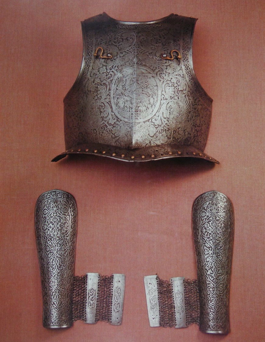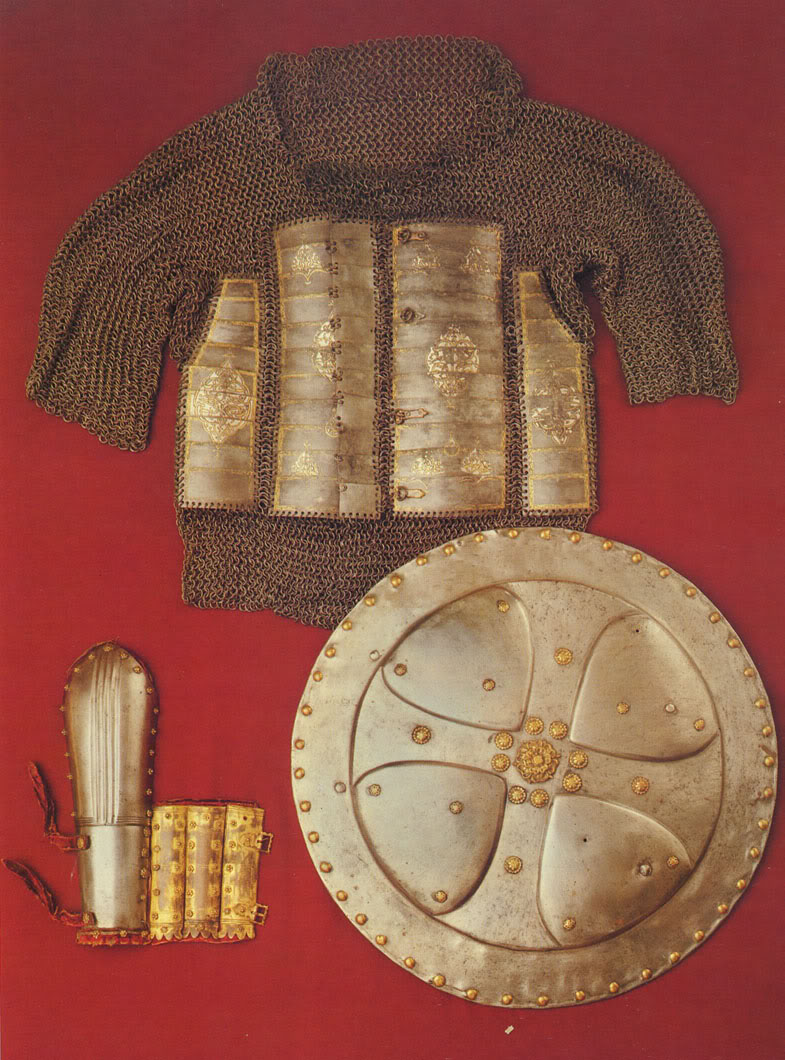 Юшман, наручи, щит боярина Никиты Романова, XVIIв. Государственная Оружейная палата Московского Кремля.