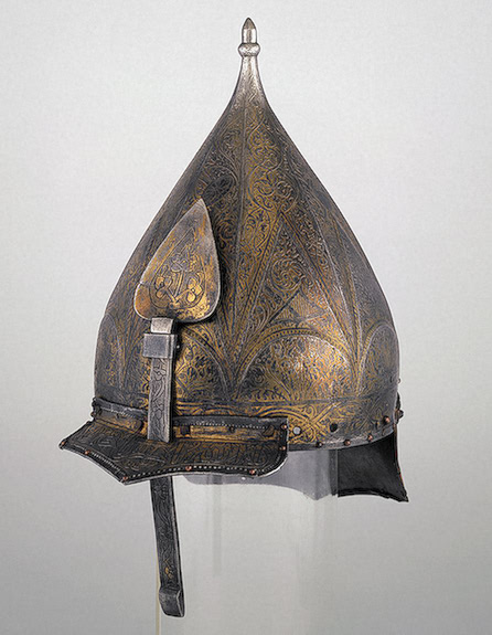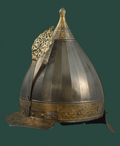 Турецкий шлем. Эрмитаж Санкт Петербург. Сер. - втор. пол. 16-го века Сталь и золото, ковка, клепка и насечка. Высота 27,9 см.