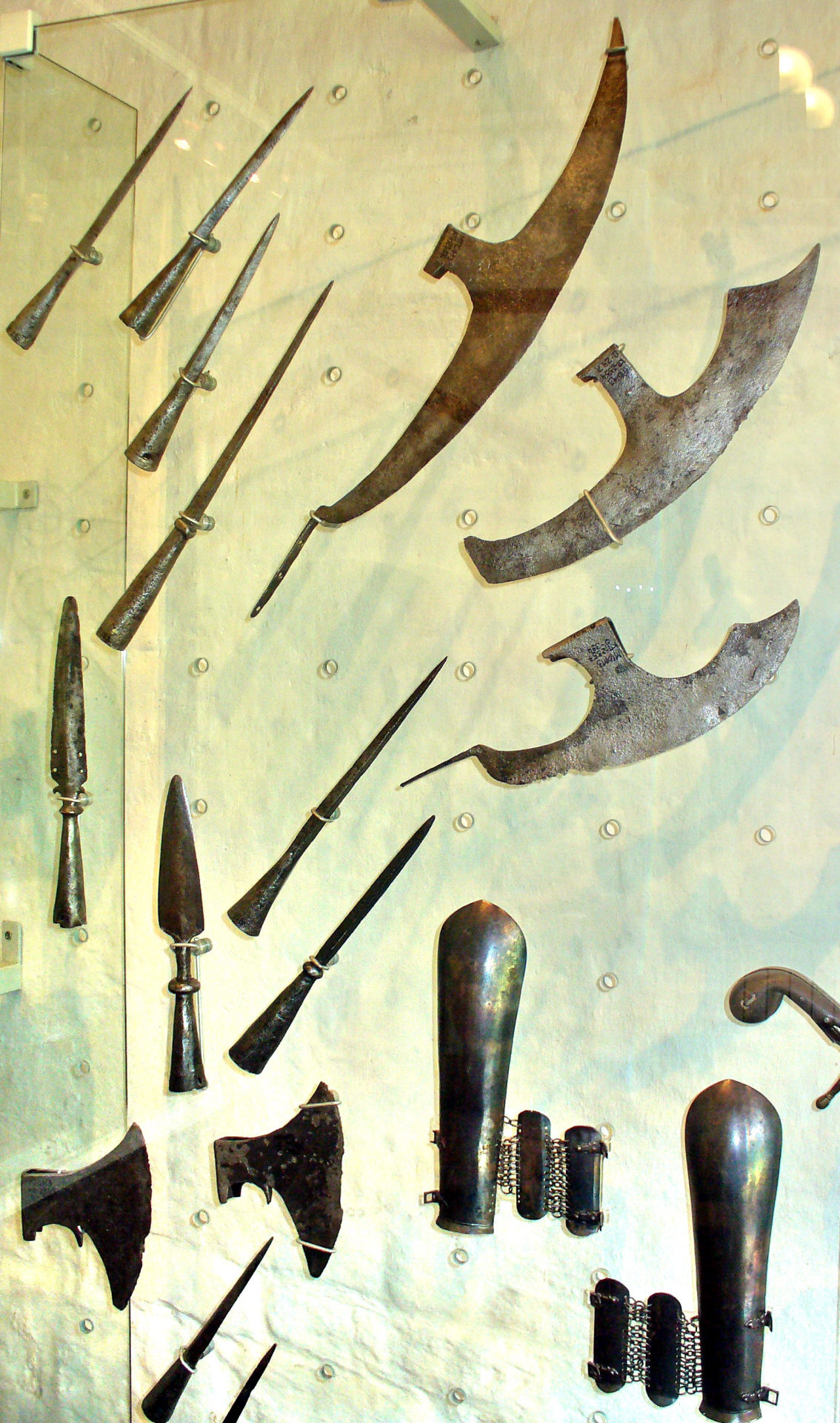 Наконечники пик и копий, бердыши - из Соловецкого монастыря. Наручи, боевые топоры. Всё - XVII век, Россия.