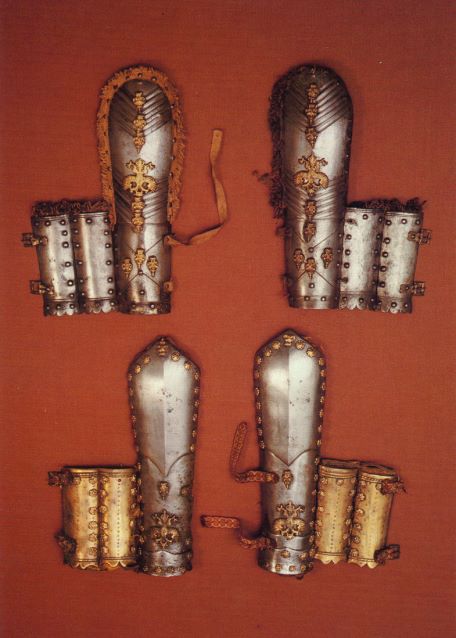 Две пары трубчатых наручей 17-го века. Оружейная палата, Москва.