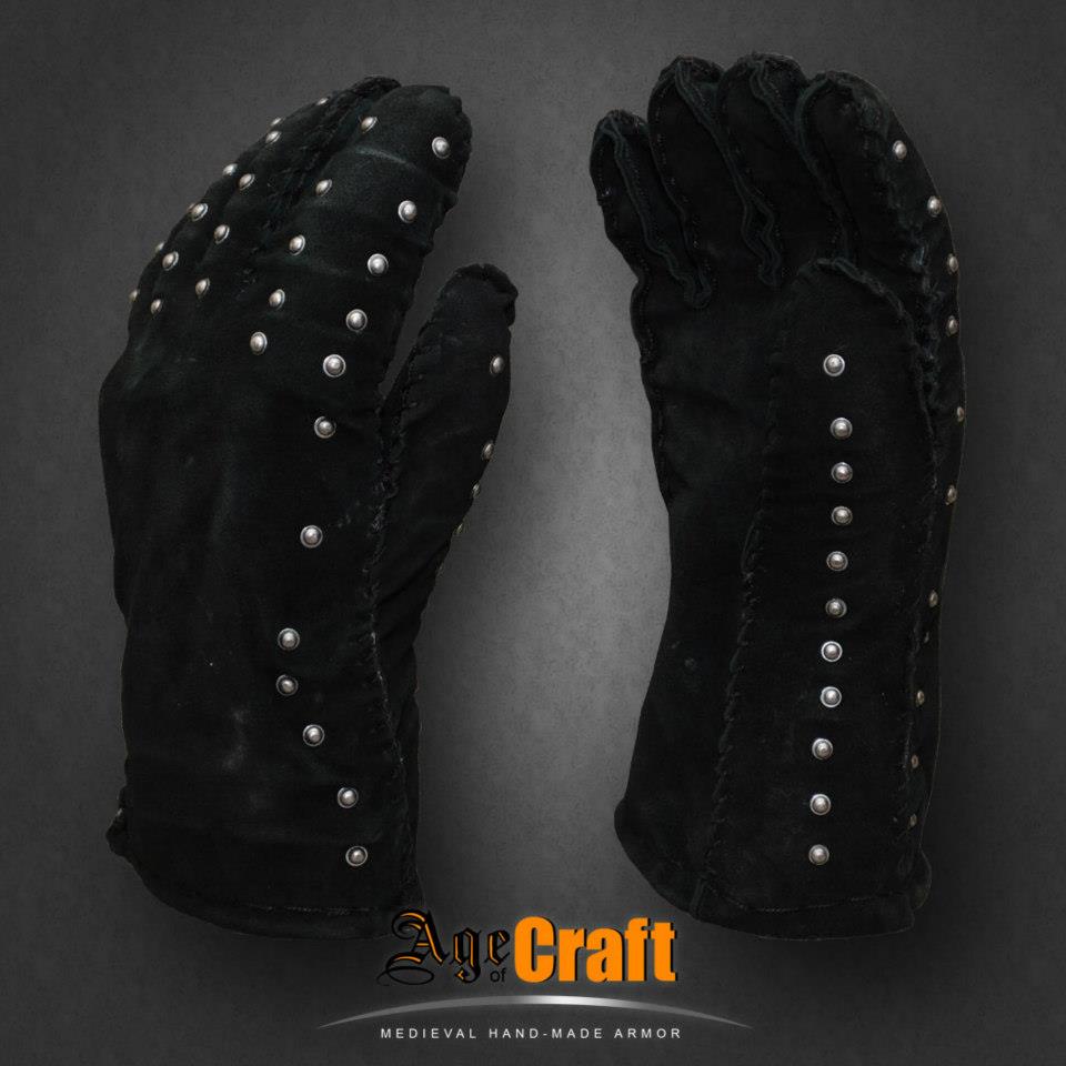 Бригантные перчатки выглядят достаточно скромно, но они вполне исторически обоснованы. Изобразительные источники и находки зазиты кисти данноготипа датируются 1300-1380 годами. Ои прекрасно подойдут для реконструкции рыцаря или преуспевающего пехотинка указанного периода. Они сделаны на натуральной коже и сшиты вручную, пластины намягкой подкладке, вес одной составляет от 0.9 до 1.4  кг.
