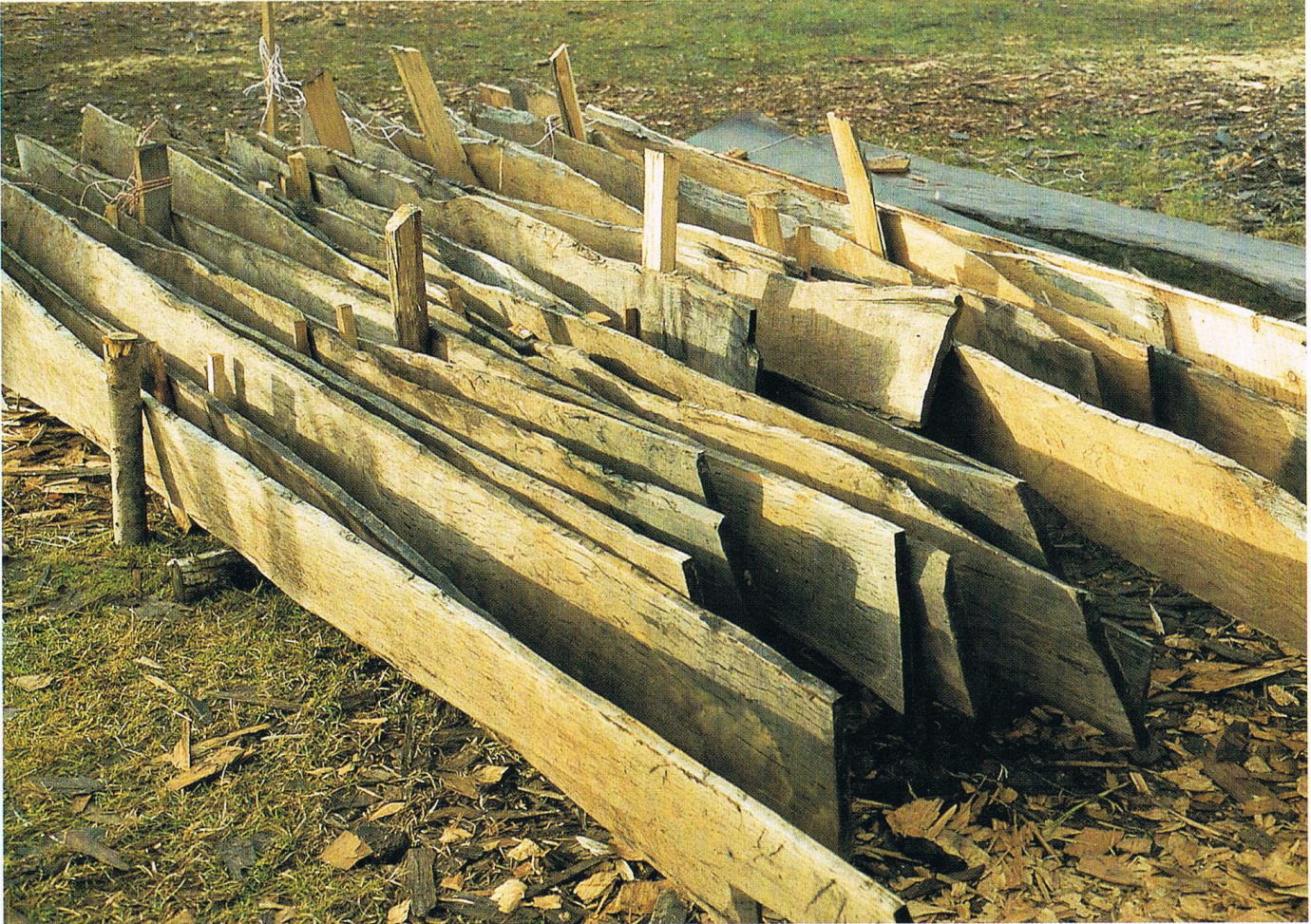Доски-заготовки для ладьи. Всего 3 ствола. Трудно даже представить сколько труда стоило обработать таким образом 11 580 кубометров дерева для соседней крепости, но у нас статья о ладьях.