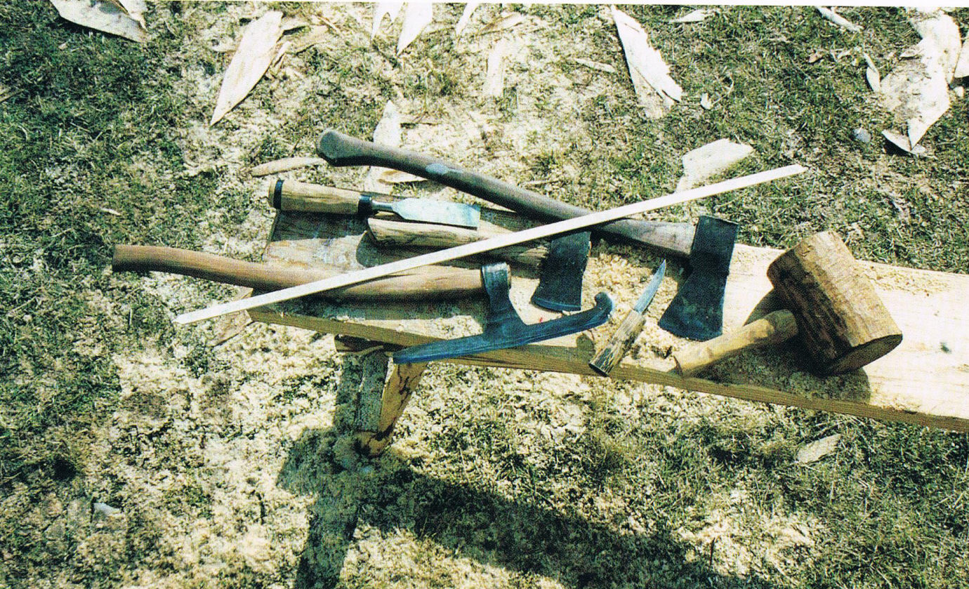 Вытесанная топором деревянная деталь впитывает воду намного меньше выпиленной. При вытёсывании поверхностный слой древесины уплотняется, при выпиливании – наоборот. И в более поздние времена плотники возводили деревянные строения, пользуясь по большей части топорами.