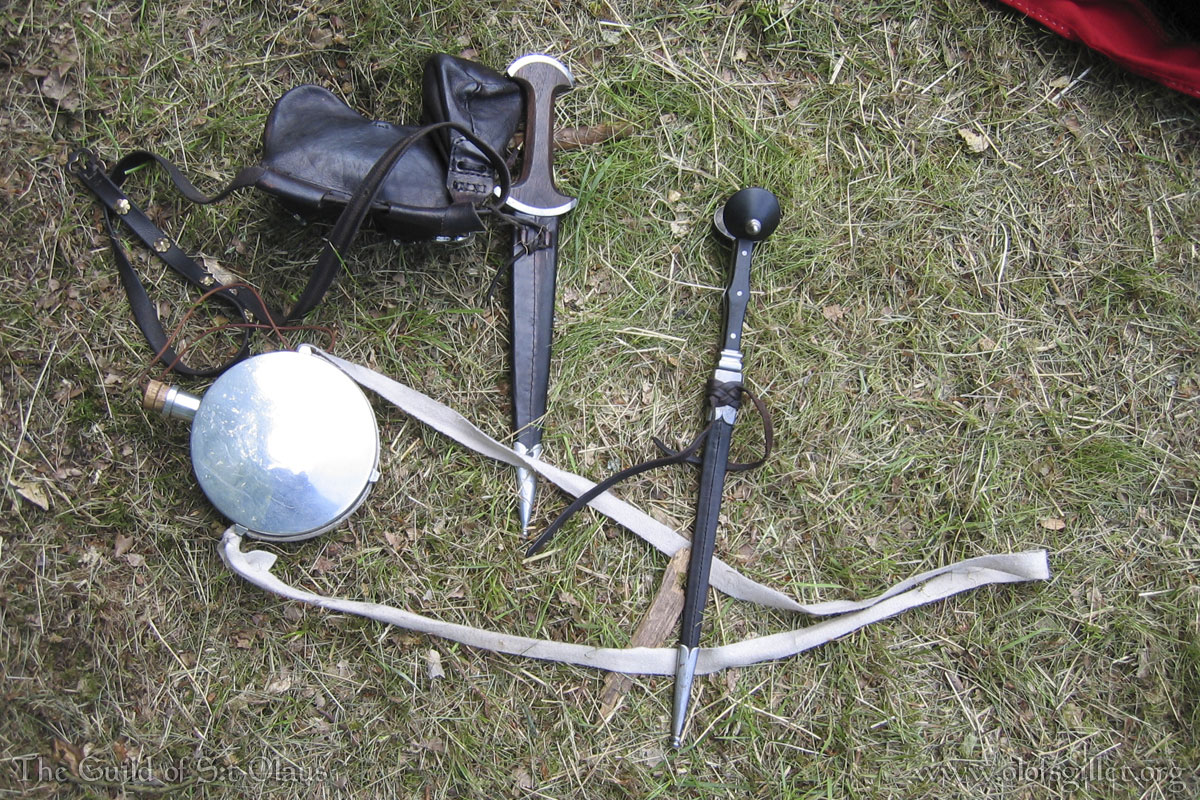 Поясные: фляга, кинжал базелярд, ушастый кинжал
