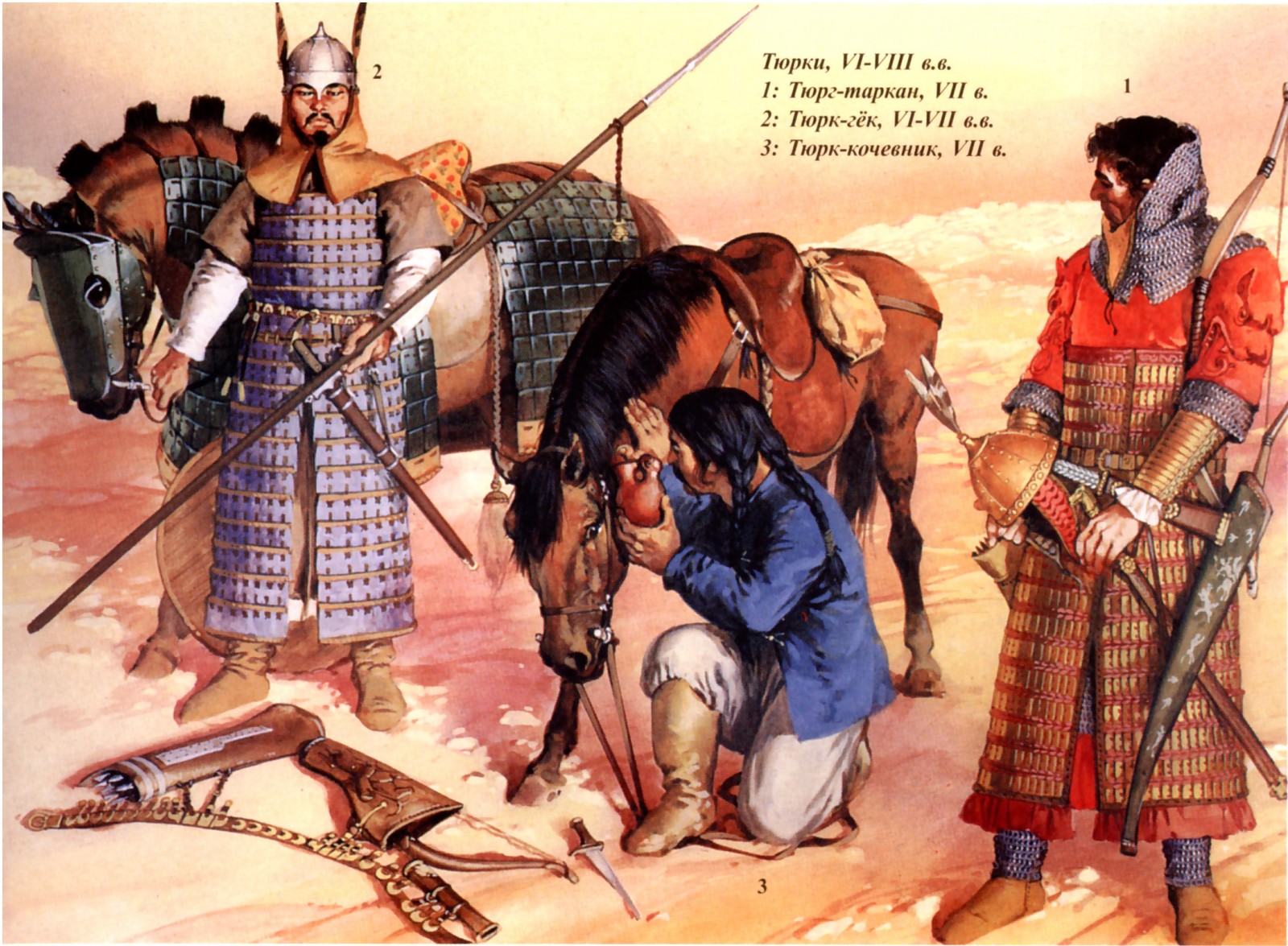 тюрки-воины 6-7 векЦель нашей статьи классификация и типология вещественных находок тюркских панцирей. Сохранность и состав данного вида доспеха различны: чаще всего в археологических памятниках находят панцирные пластины или их фрагменты и гораздо реже отдельные части панцирей. Судить о таком важном признаке панциря как его покрой по материальным остаткам крайне сложно. Здесь желательно привлечение иконографических источников и такая работа по тюркскому доспеху уже проводилась (Новгородова Э.А., Горелик М.В., 1980; Горбунов В.В., 1998). Между тем панцирным пластинам, как элементам, из которых набирается конструкция панциря, присущи самостоятельные закономерности изменения во времени и пространстве, не зависимые от покроя панциря. Здесь особенно информативны такие признаки как система расположения отверстий в пластинах, параметры и форма пластин. Поэтому исследование панцирных пластин не менее перспективно, чем изучение самих панцирей.