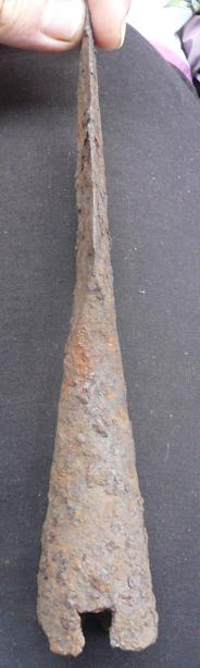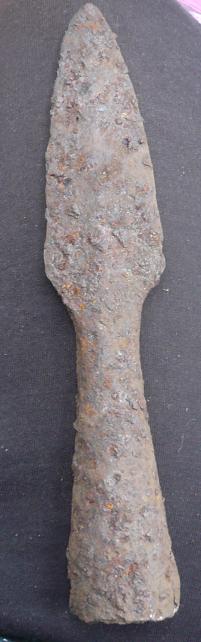 Копье из Золотаревского городища [3. Рис. 86,5] общей длиной 240 мм, длиной пера 125 мм, шириной 20 мм.