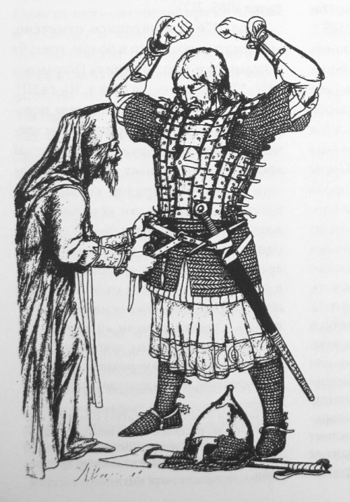 Обряд воинского посвящения в княжескую дружину на РусиПри выделении из общеродового народного войска эпохи военной демократии элитных отрядов профессионалов, постоянно занимающихся военным ремеслом и несущих боевую службу при князе, в их среде неизбежно формируется и практикуется специфическая воинская обрядность инициации молодых воинов, которые как бы выходят из привычного для рядовых соплеменников мира старых родовых отношений и вступают в новую семью – специфическое военное братство посвященных, которое емко и точно характеризуется древнерусским термином «дружина».