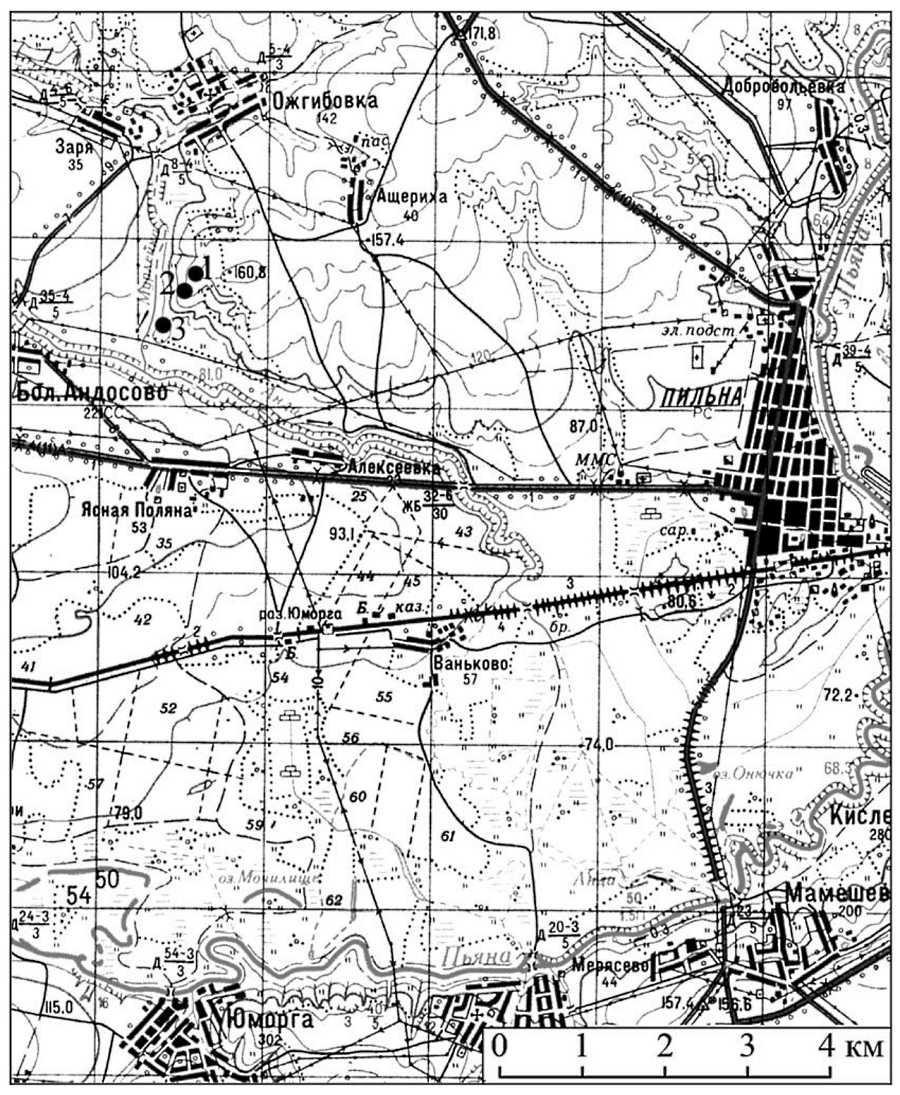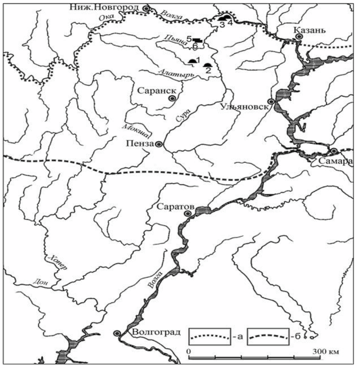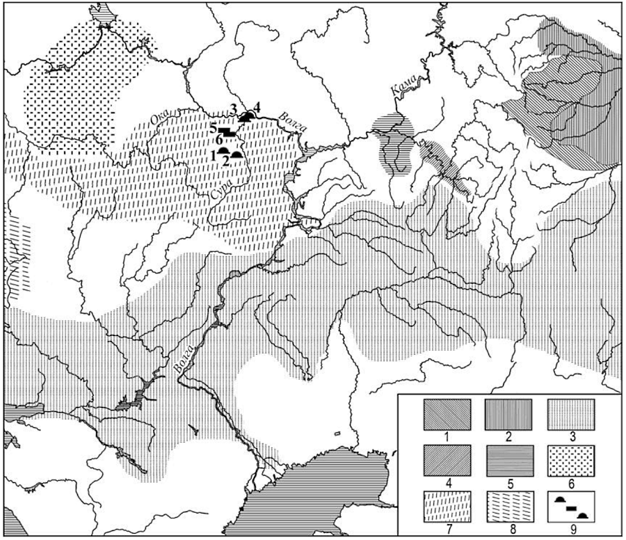 Открытие этих интереснейших памятников значительно расширило представление о сложных этнокультурных процессах, происходивших в лесостепных районах северо-западной части Приволжской возвышенности в конце эпохи раннего железного века (рис. 2].
