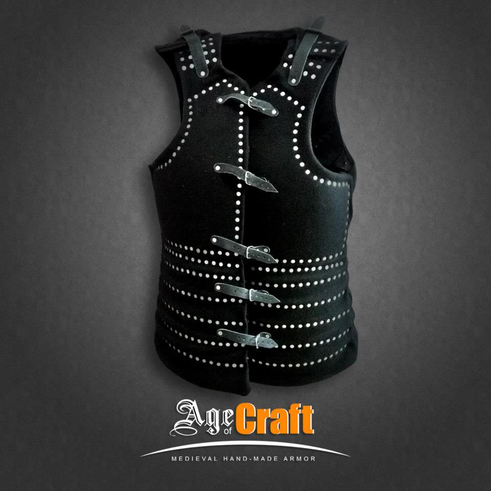 Бригантина, из раскопок замка Халкис (анг. Сhalkis, греч. Χαλκίδα) на греческом острове Эвбея, является весьма желанным доспехом тех кто занимается Западной Европой и желает при этом выглядеть весьма статусно, а также иметь надежную защиту своего корпуса. Толщина мелких пластин этой бригантины 0,8 мм - они лежат с большим нахлестом; крупные пластины на груди и спине толщиной 1,5 мм. Пластины защищены от ржавчины лужением. Вес бригадины целиком 7 кг. Суконная покрышка с двумя слоями крепкой льняной ткани, можем изготовить и внутреннюю подкладку.