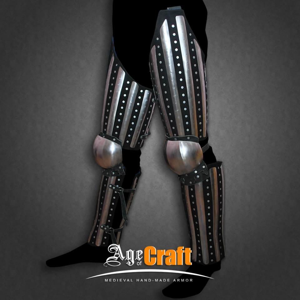 Одна из популярных видов защиты ног в середине XIV-го века, она использоваласть параллельно иногда и совмесно с кольчужными чулками. Подобная защита ног использовалассь совмесно с чешуйчатой защитой ступней и бригантной защитой корпуса. Кисти рук были защищены перчатками "Песочные часы", а сами руки также были защищены подобной броней.