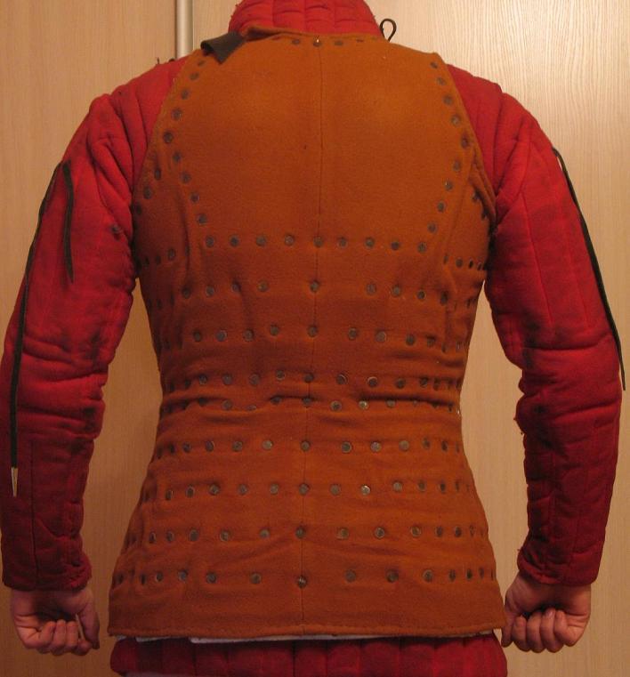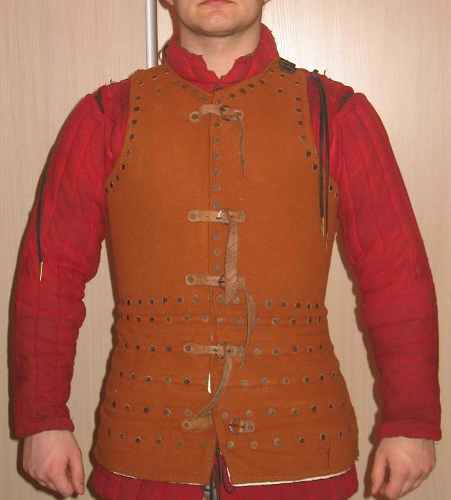 Бригантина, из раскопок замка Халкис (анг. Сhalkis, греч. Χαλκίδα) на греческом острове Эвбея, является весьма желанным доспехом тех кто занимается Западной Европой и желает при этом выглядеть весьма статусно, а также иметь надежную защиту своего корпуса. Толщина мелких пластин этой бригантины 0,8 мм - они лежат с большим нахлестом; крупные пластины на груди и спине толщиной 1,5 мм. Пластины защищены от ржавчины лужением. Вес бригадины целиком 7 кг. Суконная покрышка с двумя слоями крепкой льняной ткани, можем изготовить и внутреннюю подкладку.