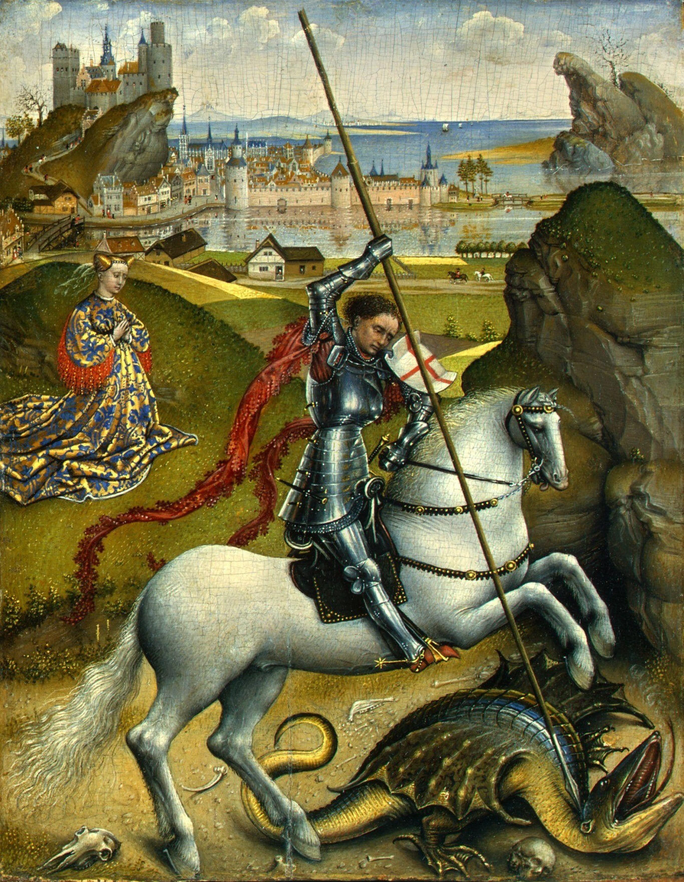| Святой Георгий 1390-1392 гг, музей изящных искусств в Дижоне, Франия | Басинэ, пурпуан, другое снаряжение. Надгробие Вальтера фон Гогенклингена, погиб в 1386 г. Швейцарский национальный музей, Цюрих. |