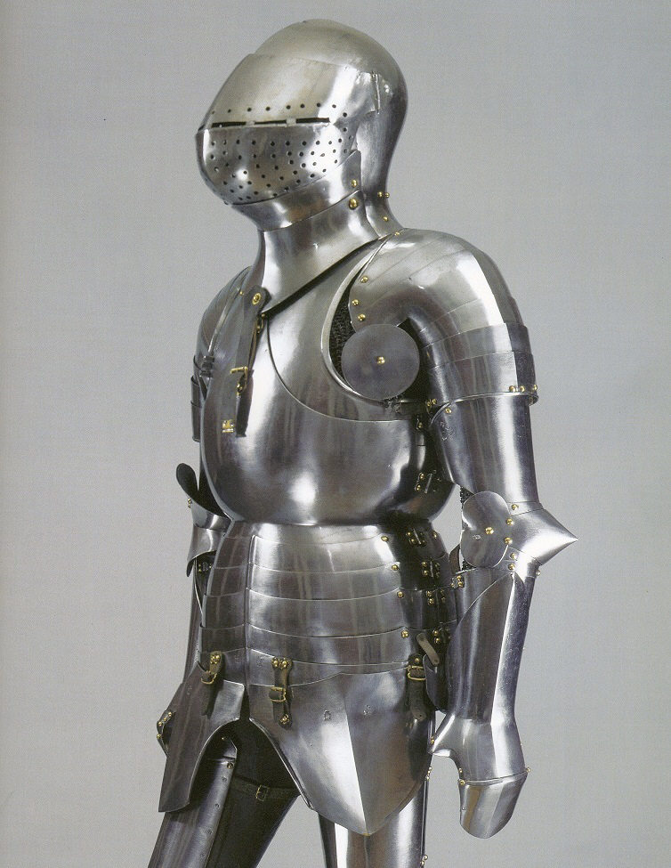 К 1420 г. бланк-арнуа превратились, действительно, в белый доспех, который постепенно «выбрался» из-под жюпонов и засиял в лучах солнца ослепительной и грозной сталью. Таков доспех одного из представителей австрийского рода Матш все из того же Хурбургского замка (инв. СН S18).