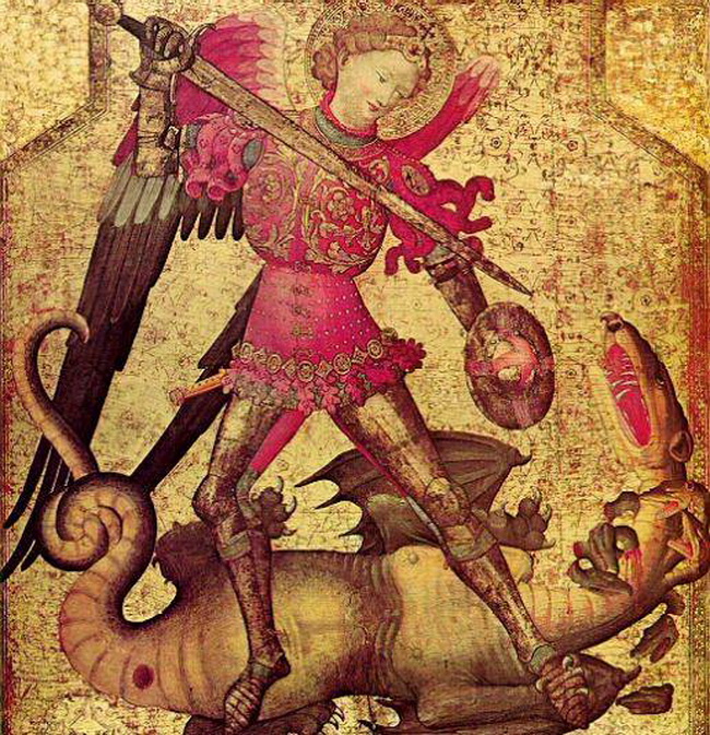| Рыцарь в устаревшем облачении. Novella Malatesta, Антонио Пизанелло 1445 г., музей Барджелло, Флоренция | Кирасовидная бригантиина, с покрытием красного цвета. Агрхангел Михаил побивающий дракона, работа неизвестного художника, 15 век, Валенсия Испания. | Доспех одного из представителей австрийского рода Матш, 1420 г. Замок Хурбург, Австрия. еще фото |