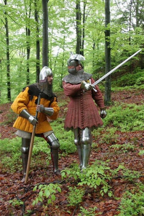 Таким образом перечислены почти все элементы военного костюма жандарма (за исключением кольчатой юбки, которые можно увидеть на доспехах Ульриха IV Матша из Хурбургского замка, тех самых доспехах, с которых мы начали краткий экскурс в историю бургундского вооружения второй половины XIV в.