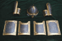 Все элементы выкованы из стали. Подвержены глубокому травлению, отделаны гравировкой и позолотой.