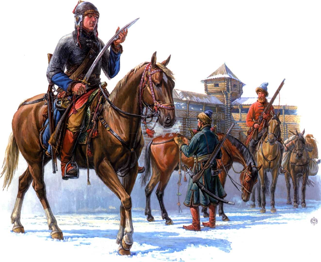 Луцкий дворянин, новик Михаил Петров сын Лукомский с боевыми холопами во взятом Невеле, художник Олег Федоров