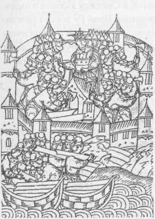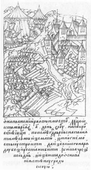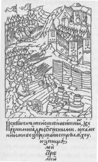 Стрельцы – с пищалями многие стали и стреляли в город по улицам и по стенам градным и побивші многие же люди».