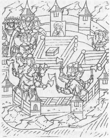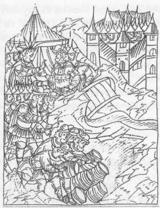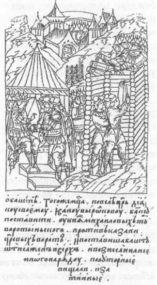 ...и во все полки послати велел, чтобы во всей рати приготовичи на 10 человек туру, да всяк человек бревно на тын уготовал».