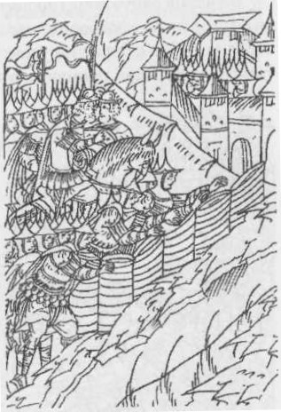 Весь стратегический план штурма города был детально разработан и сообщен на военном совете 1 октября. Тот или иной полк должен был штурмовать точно указанные в диспозиции проезжие ворота, причем наступление приказывалось вести в следующем порядке: впереди идут стрельцы, казаки и дети боярские, затем часть полка во главе со вторым воеводой. Остальная часть во главе с большим воеводой являлась как бы резервом: ...ав Кабацкие [Кайбицкие. - К.Р.] ворота воеводам передовому полку: наперед князю Дмитрию Ивано-виню Хилкову (второй воевода. -О.Х.); а помогати ему боярину князю Ивану Ивановичу Пронско-му (большой воевода. - О.Х.) [...]. А в Елбугины ворота от Казани-реки воеводе князю Андрею Михайловичю Курбьскому (второй воевода. -О.Х.), а помогати боярину князю Петру Михайловичю Щенятеву...».