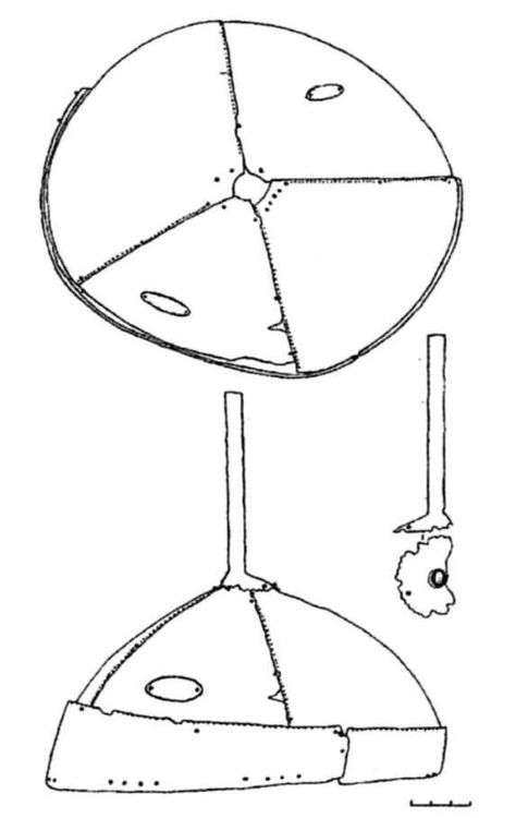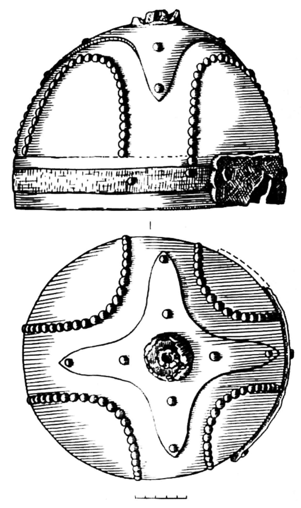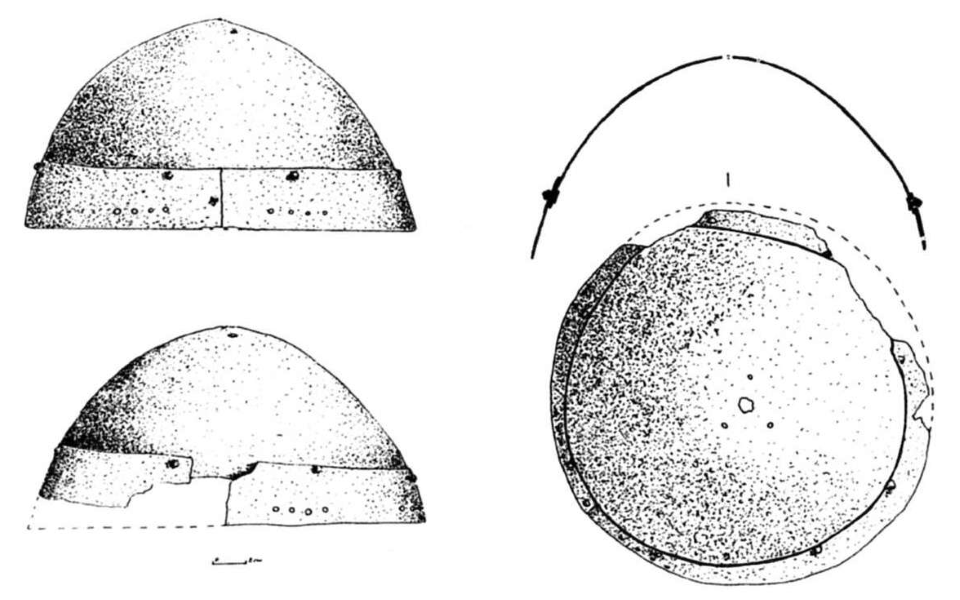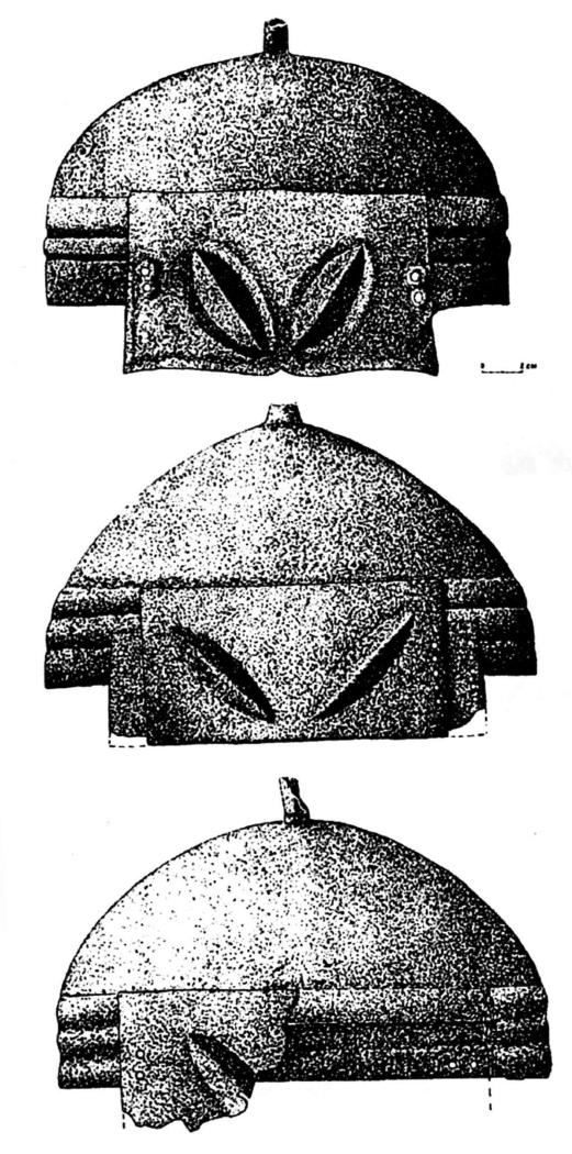 Между тем, как мы видим, навершие ничем не отличается от навершия шлема из Козьих скал, поэтому с большой долей вероятности можно предположить, что оно относится к шлему такого же типа.