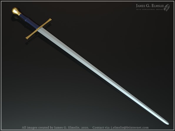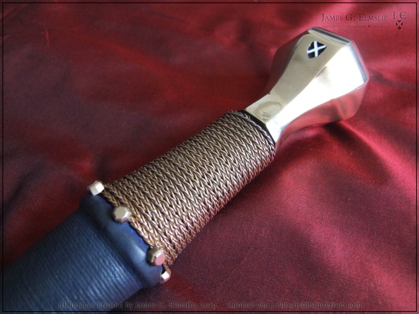 Его клинок выкован из стали EN45 маркировки Глазго. Крестовина и навершие покрыты фосфористой бронзой, которая имитирует позолоту, но держится прочнее позолоты. Половина черена рукояти которая ближе к навершию обвита бронзовой проволокой по часовой стрелке и против часовой стрелки спиралью.