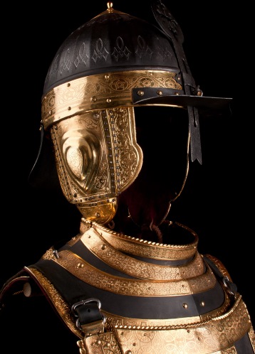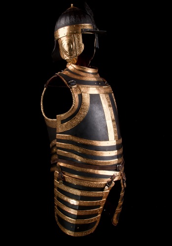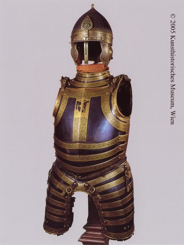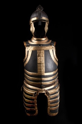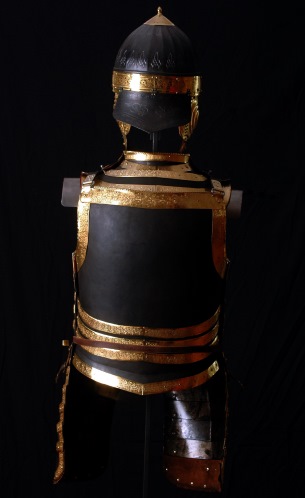 Оригинал данного доспеха принадлежал польскому королю Стефану Баторию, правившему в 1576-1586 годах. Доспехи представляют собой кирасу полурак (то есть половина состоит из широких сегментов) с набедренниками, и шлем типа "Ерихонская шапка" с наушами, козырьком со стрелкой, закрепленным подвижно односегментным затыльником.