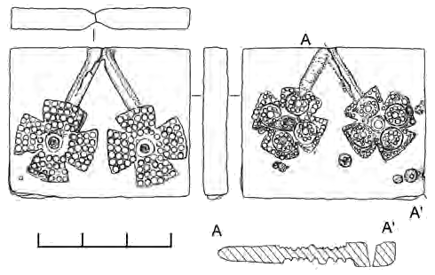 В декабре 2004 г. в Киеве по улице Верхний Вал, 68, Подольской археологической экспедицией под руководством М.А. Сагайдака исследовался участок древнего Подола, расположенный в непосредственной близости от Днепра. Регулярной городской застройки на участке не было прослежено вплоть до XIX в., а многочисленные аллювиальные прослойки указывают на его регулярное затопление весенними паводками. На глубине 3,0 м от уровня современной дневной поверхности, при зачистке горизонта Г-10, была обнаружена длинная полоса культурного слоя шириной 5,20-5,50 м, тянувшаяся через весь раскоп по направлению к Днепру, мощностью до 0,10-0,12 м (горизонт Г-8). Слой изобиловал крупным песком и мелкой речной галькой, спаянной в насыщенные металлом конкреции, включая также многочисленные отходы ювелирного производства. По всей видимости, данное образование представляло собою остатки ручья, протекавшего здесь в древности. Среди большого количества бронзовых и железных шлаков, мелких фрагментов металла и обломков металлических изделий была найдена и бронзовая ювелирная форма.
