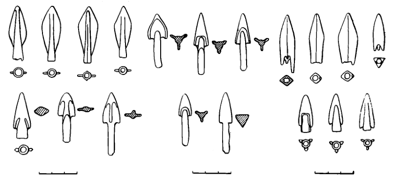 Рис. 9. Бронзовые наконечники стрел из сакских погребений Тагискена