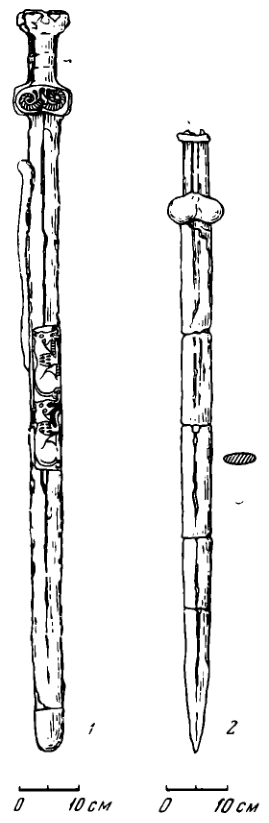 Рис. 14. Могильник Тагискен. Сакские мечи. 1 – кург. № 53; 2 – кург. № 59 (железо)