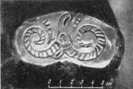 Таким образом, опять линии связей уводят нас в савроматский мир, а аналогии среди ананьинских древностей отнюдь не противоречат этому заключению. И А. В. Збруева38 и К. Ф. Смирнов39 подчеркивают влияние савроматской культуры на ананьинскую.