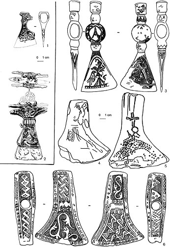 - Как показывают находки орнаментированных топоров в Восточной Европе, традиция ранговых топоров, связанных с культом Тора-Перкуно и с земледельческими обрядами, в 10-11 вв. распространилась из западнобалтского ареала на восток, в пределах православной Руси.