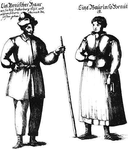Значение топора в повседневной жизни прусских земледельцев трудно переоценить. Пруссы в 14 в. на лёгких, песчаных почвах практически не использовали тяжелый плуг и продолжали практиковать подсечное земледелие. Топор в Пруссии долгое время являлся одним из основных орудий подсечного земледелия. Как и у гуцулов Закарпатья, "декоративный вариант" этого неотъемлемого спутника жизни земледельца и хозяина усадьбы стал его ранговым знаком. Воины-пруссы, ставшие в строй под знамёнами, переняли виды рангового оружия, уже ставшие популярными в феодальной Европе. К такому оружию относится орнаментированные наконечники арбалетных "болтов", служившие своего рода жезлами военачальников мелких пехотных подразделений (рис. 6, 1, 2).