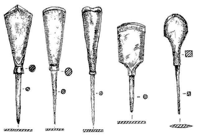 Рис. 5. Втульчатые и черешковые наконечники стрел Рис. 6. Различные типы срезней