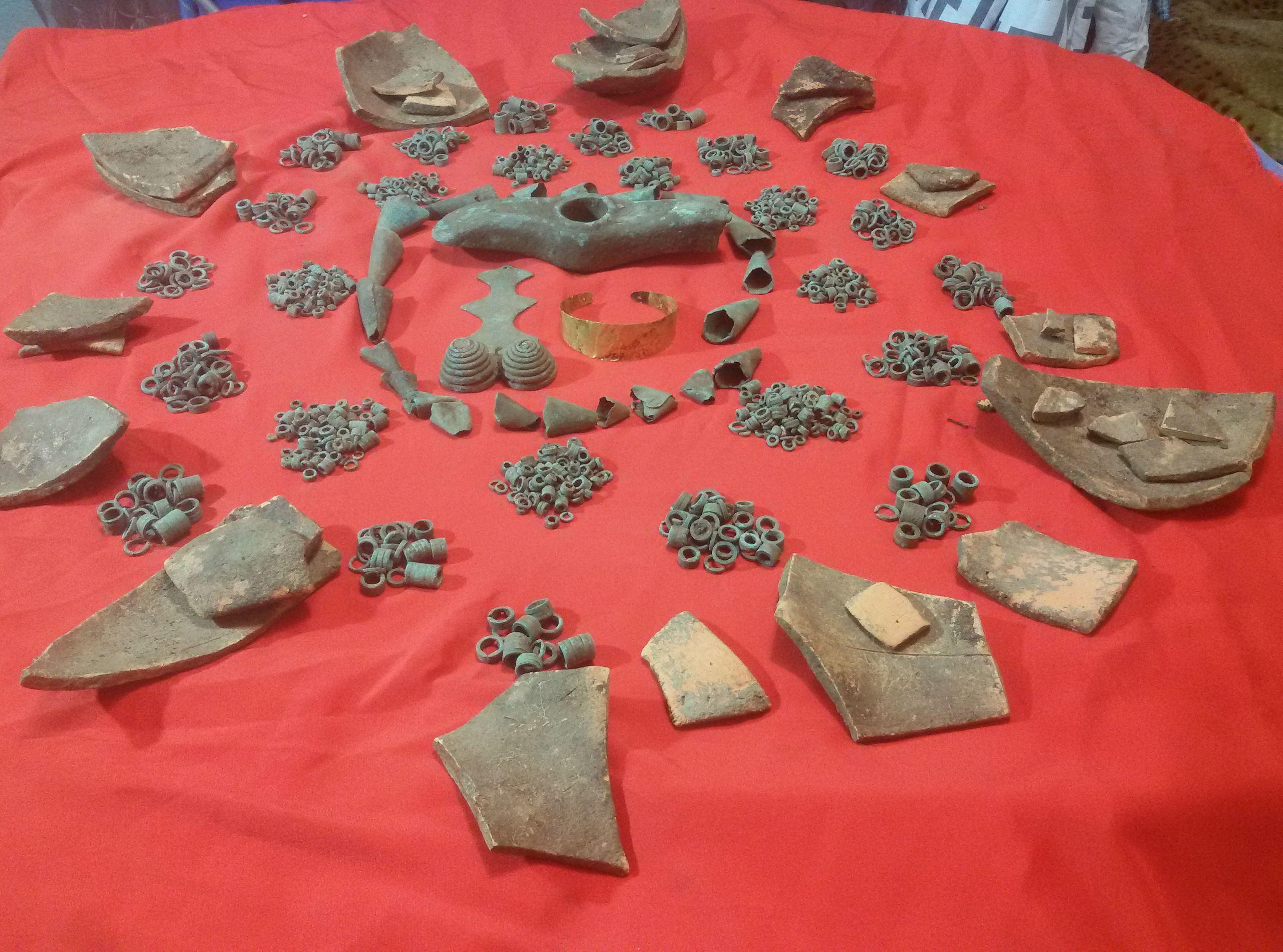 Фрагменты керамики сосуда в котором находились данные предметы.