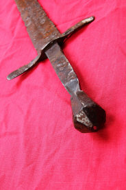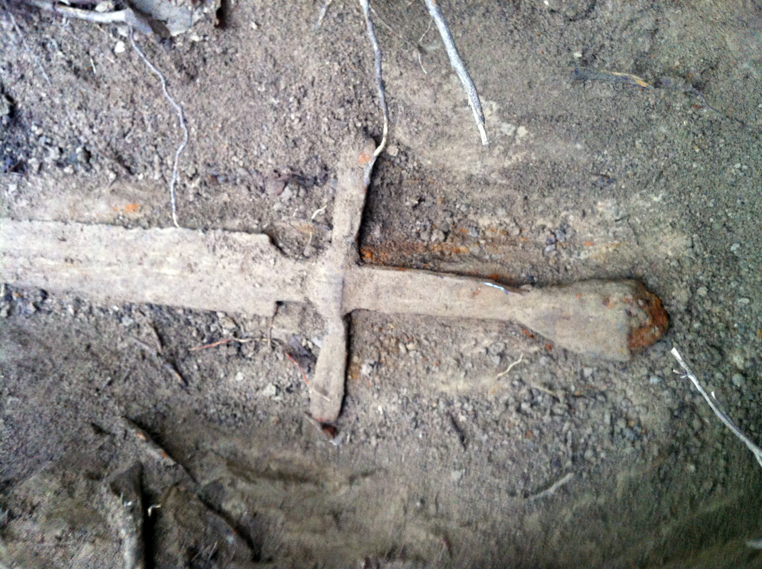 находки. Гарда изначально была сдвинута и её пришлось двигать на место. Сам меч