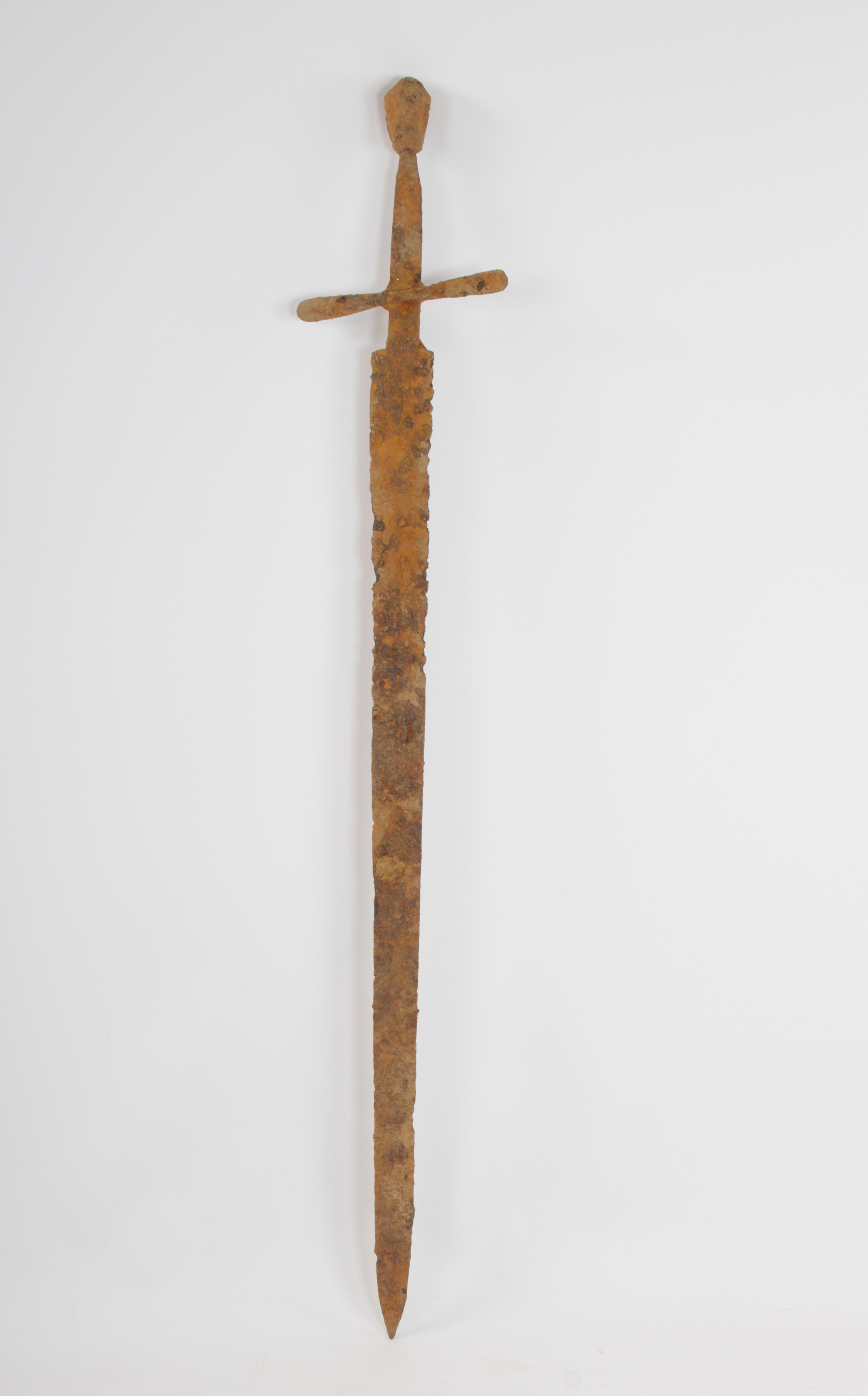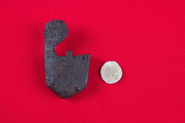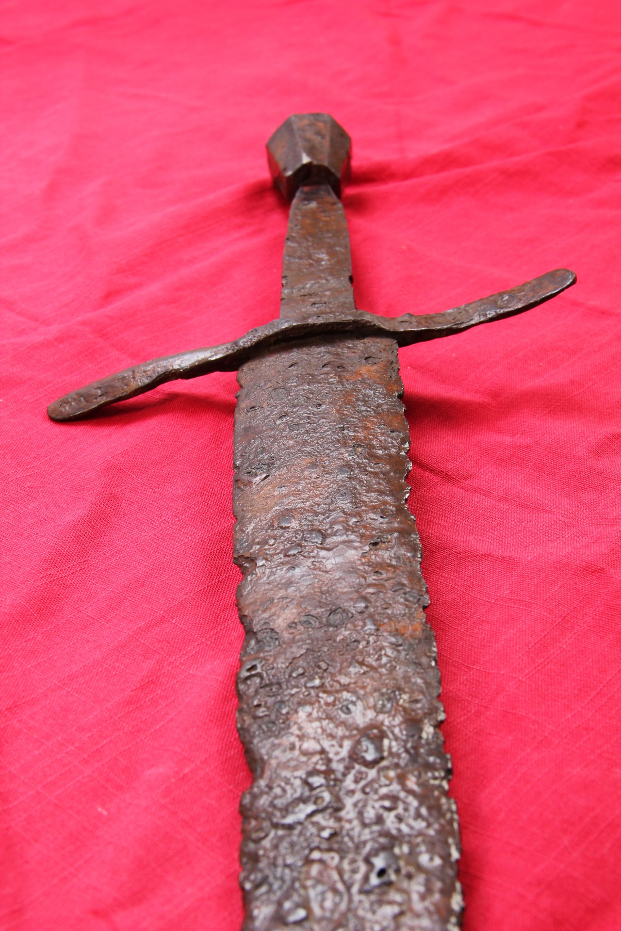 Бонусом с мечом идёт окончание ножен покрытых микрокристаллическим воском, а также найденная рядом с мечом пломба тех времён.