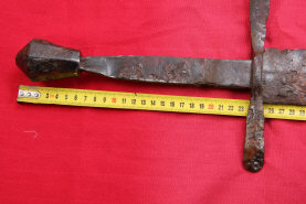 По времени найденный меч относится к концу XIV-XV вв. тип по Окшотту XVIa, вероятно центрально-европейский, у поляков тоже мог быть, правда точно не данных на то что они делали.