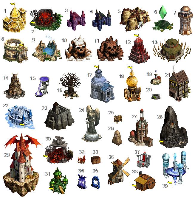 Летающий замок. Заменяется один Университет на поверхности. Попасть в Летающий Замок можно только используя заклинание Полёт. Имеет охрану из 3 Красных Драконов. Имеет большую награду опытом и золотом, а также артефактами в числе которых Кольцо Власти.