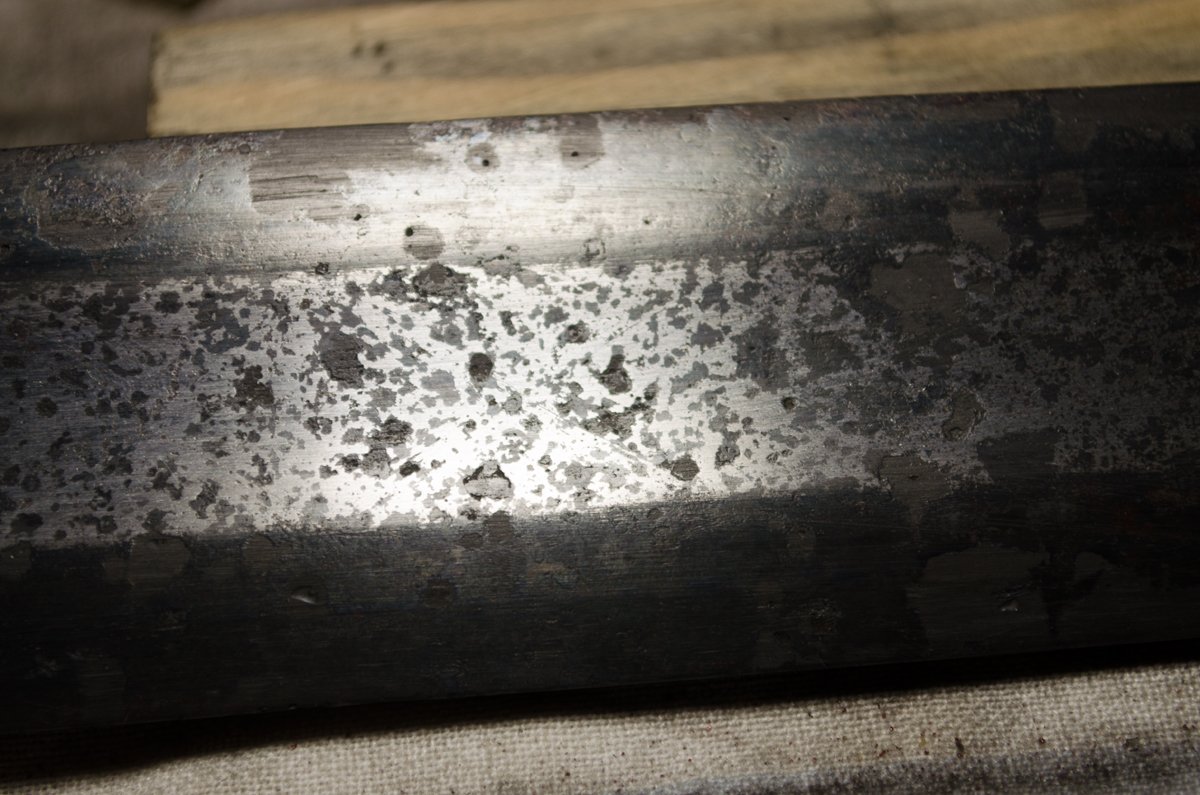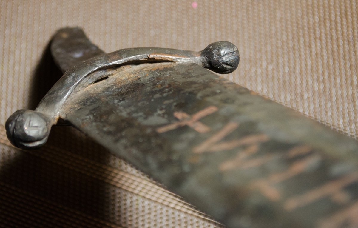 Попал ко мне на реставрацию интересной компоновки меч. Состояние не радовало плюс клинок погнутый был. Прадва попал ко мне уже в микровоске.