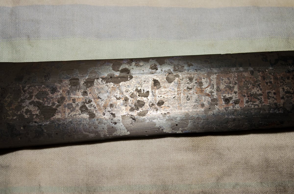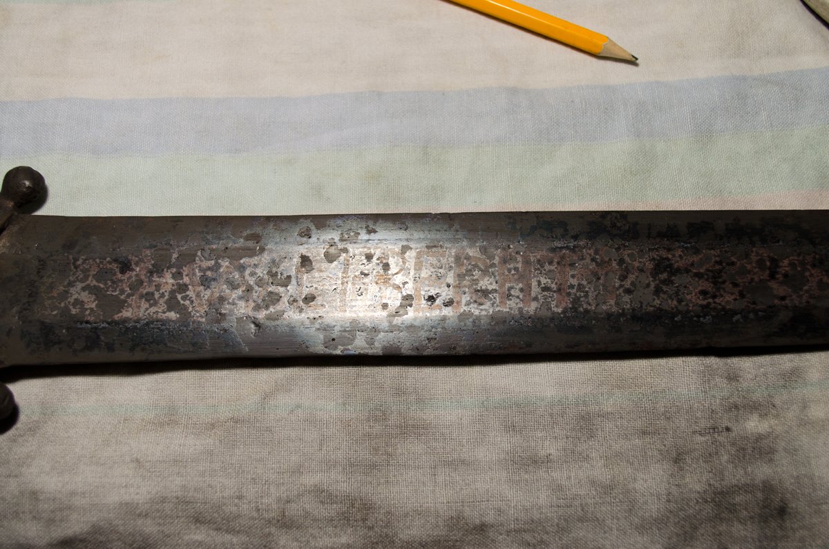 Полдня посвятил идее полностью прочесть надпись на клинке с помощью рентгена, но увы - из этого толком ничего не вышло. Вот скан.