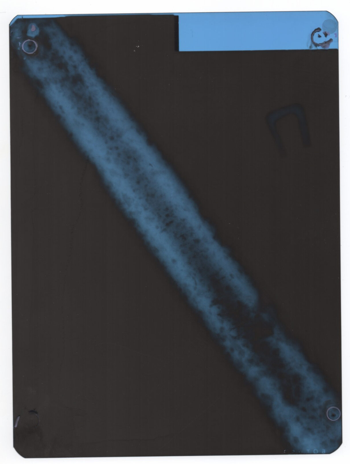 Теперь под микроскопом перенёс рисунок на плотную плёнку и сделал сканы обоих сторон клинка, сижу ломаю голову как сохранить все меты видимыми. И останется только клинок законсервировать.