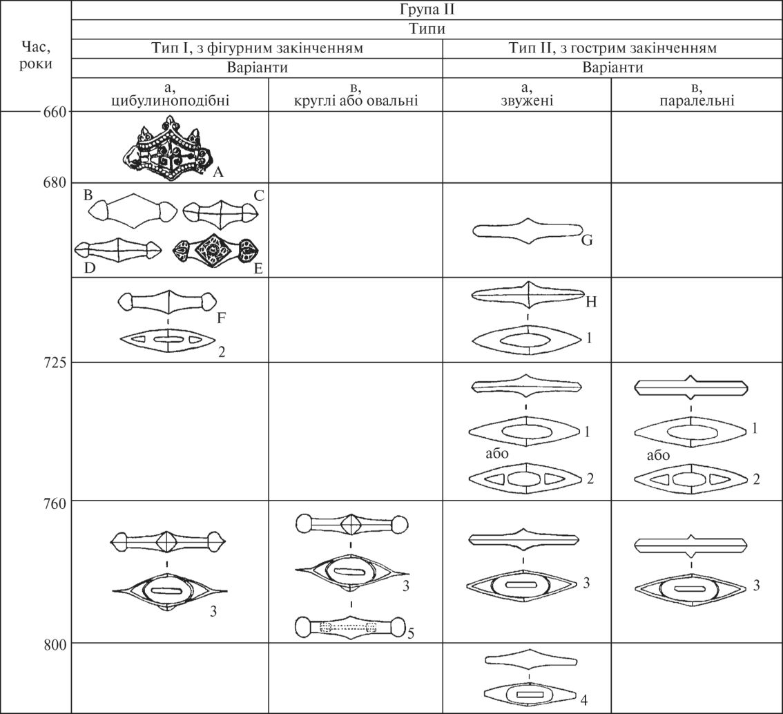 Рис. 6. Типология оружия группы II и хронологическое распределение вариантов