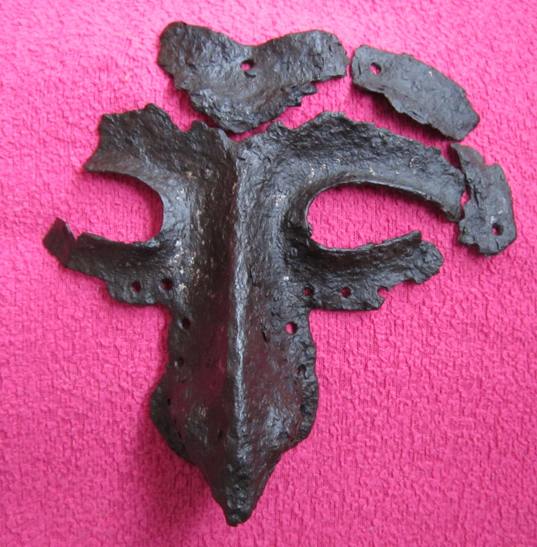 Вводится в научный оборот боевая полумаска, обнаруженная возле с. Диброво (Донецкая обл. Украина). По всей вероятности, она происходит из разрушенного погребения, в инвентарь которого также входили стремя, кресало и нож. На основании того, что обряд помещения в могилу защитного вооружения получил распространение в южнорусских степях после монгольского завоевания, делается предположение, что погребение около с. Диброво могло быть совершено не ранее середины XIII в. Также подробно рассматривается полумаска, найденная при раскопках детинца древнерусского города Вщижа (Брянская область, Россия). По данным отчетной документации подтверждается ранее предложенная датировка этой полумаски XII веком. Поэтому нет оснований возвращаться к гипотезе о распространении данного защитного элемента после татаро-монгольского нашествия. В результате проведенной реставрации и рентгенофлуоресцентного анализа поверхности полумаски из Вщижа был выяснен способ нанесения внешнего покрытия — амальгамирование серебром и золотом поверхности, покрытой сеткой из прочерченных линий. Рассмотрев все известные на сегодняшний день находки полумасок, на основании их морфологических особенностей и хронологии, авторы предполагают существование как минимум двух регионов, где изготавливались полумаски.