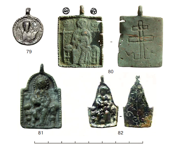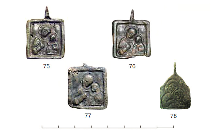 Иконки-привески данной подгруппы, представленные в Каталоге (табл. V, 64-74; VI, 75-78), имеют круглую), прямоугольную и киотчатую формы, относятся к XII-XIII вв. и были найдены на исторических территориях как Киевской, так и Владимиро-Суздальской Руси.